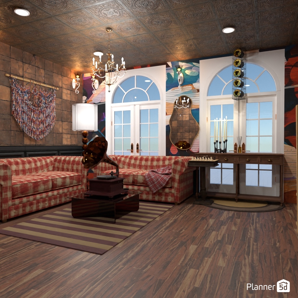 Design a living room in Maximalism style.