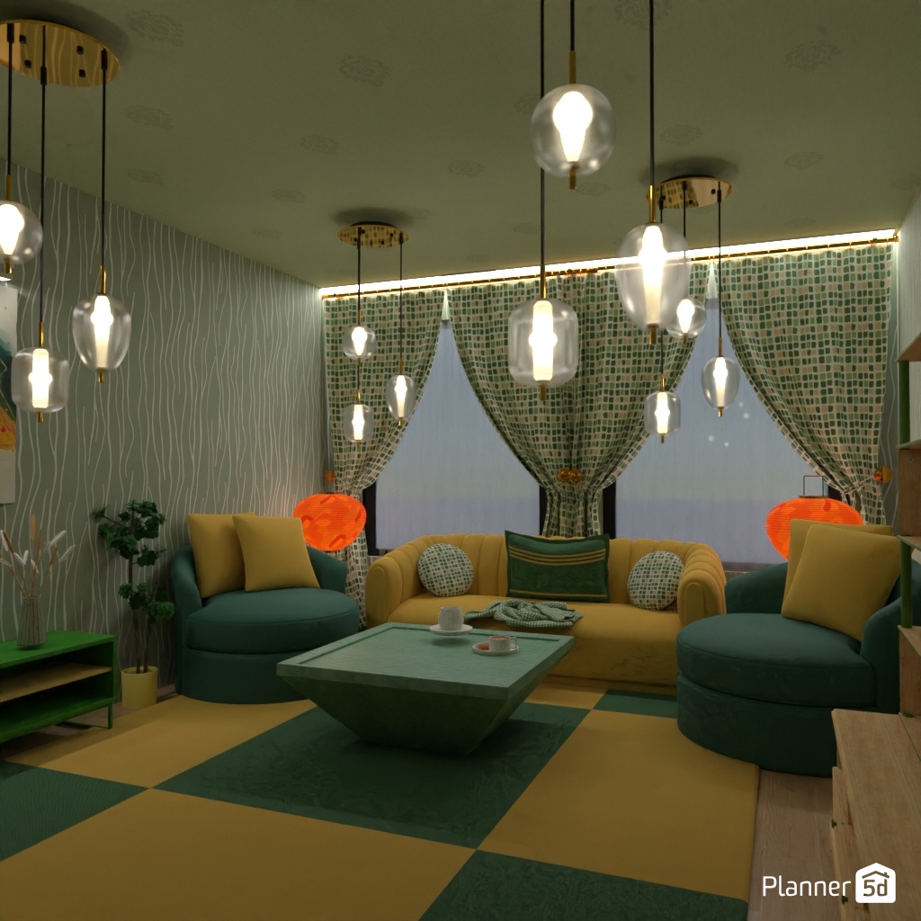 Gestalten Sie ein Wohnzimmerinterieur in zwei Farben.