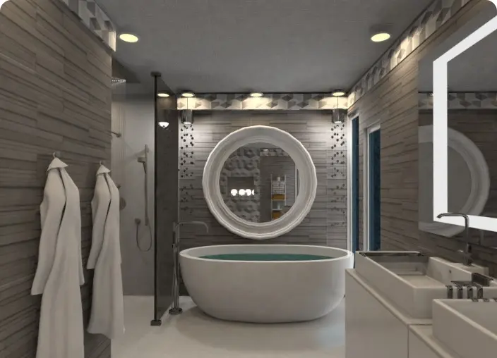 Conheça a casa dos seus sonhos! Envie uma planta baixa pronta para renderizar e explorar um modelo 3D da casa que você mesmo criou. Se necessário, reorganize seus móveis ou decoração para tornar a imagem perfeita.