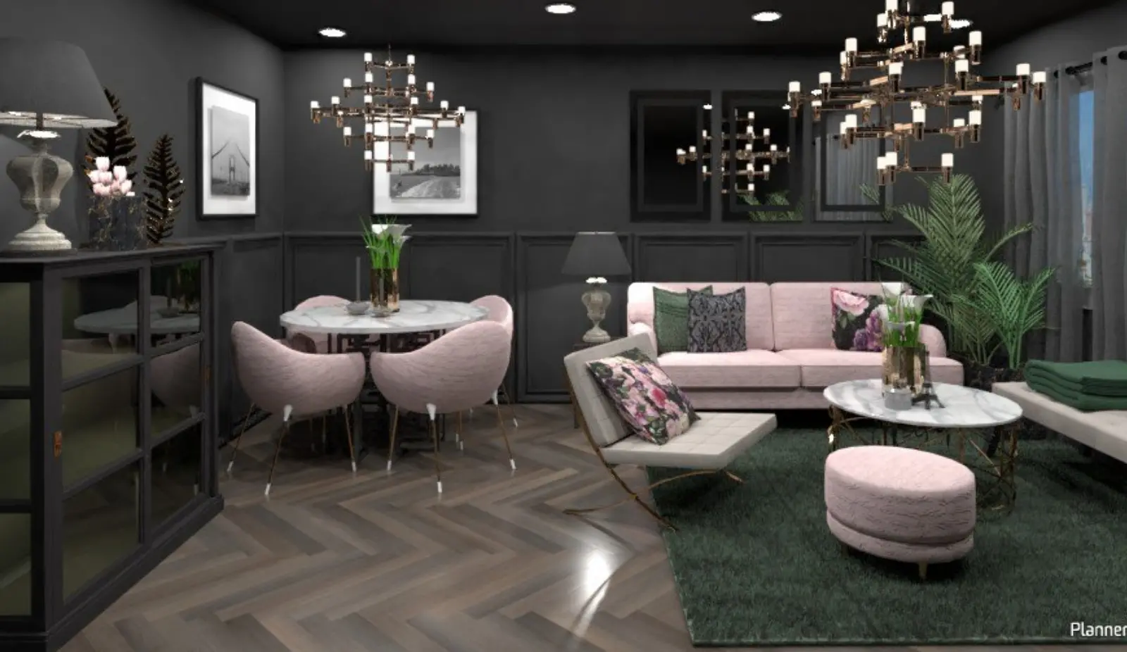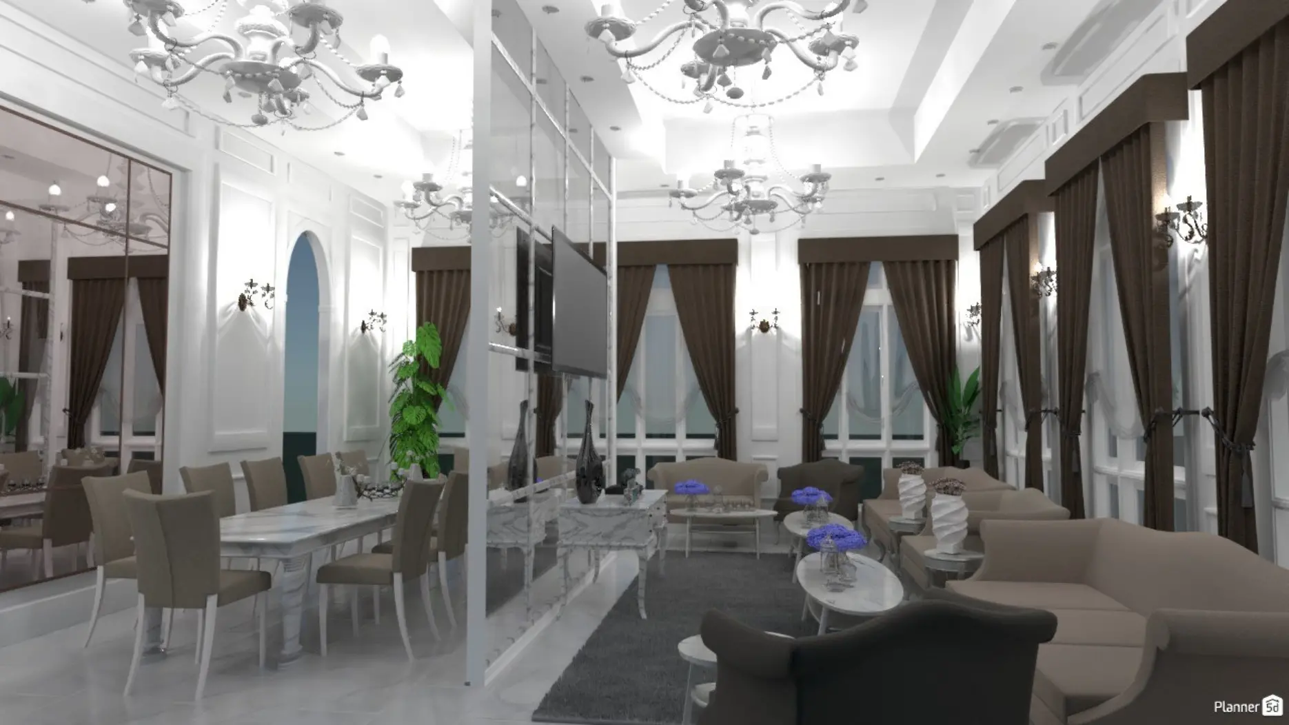 You can be sure that creating such a detailed dining room layout would be easy without Planner 5D. Especially as a beginner, it’s unlikely to achieve professionally looking results in such a short amount of time. It’s suitable for all kinds of projects – a home remodel, when you’re building from the ground up, small little adjustments to the existing dining space.