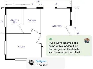 From the start, it was easy to communicate with the designer through the platform. They answered all my questions and helped me understand the details. The convenient chat and the ability to discuss every aspect make Planner 5D special.