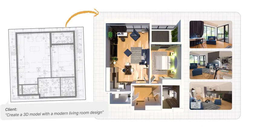 We are an interior design subsidiary of Planner5D, one of the largest home design software companies, serving about 100 million customers. Our technology-driven approach enables us to offer you the most advanced solution you can find online, at costs that are just a fraction of what traditional interior designers charge, without compromising on quality.
