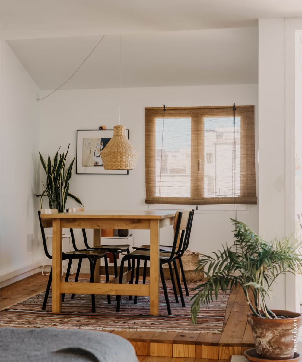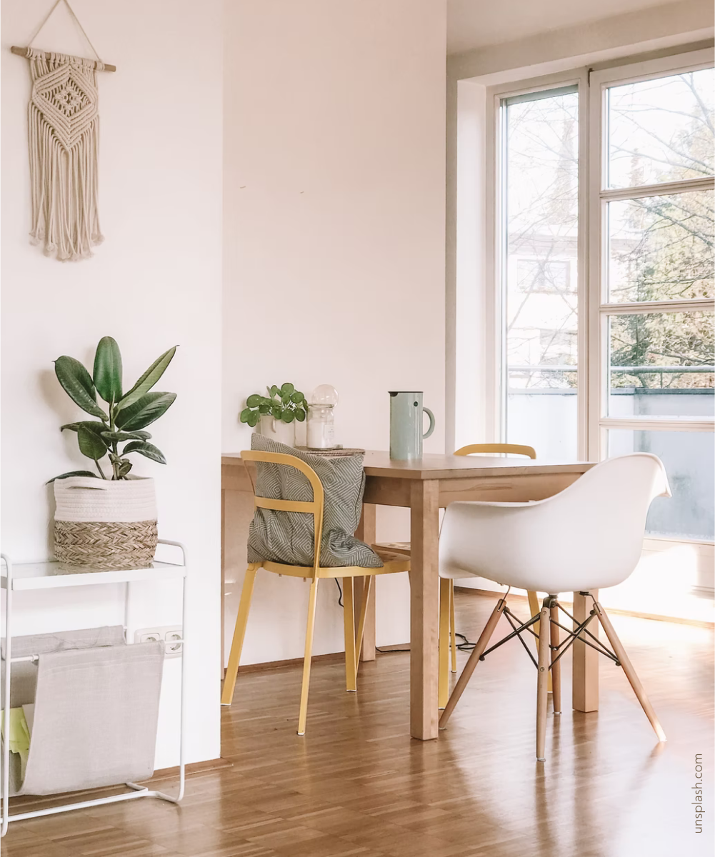 Start by measuring your space and consider the function of the room. As your dining table can be placed in the kitchen, dining room or a multi-use area in your home, it's important to consider any other elements that can interfere with the table. Things like other furniture, windows, doors and walls can impact the table's position and the shape you can use.