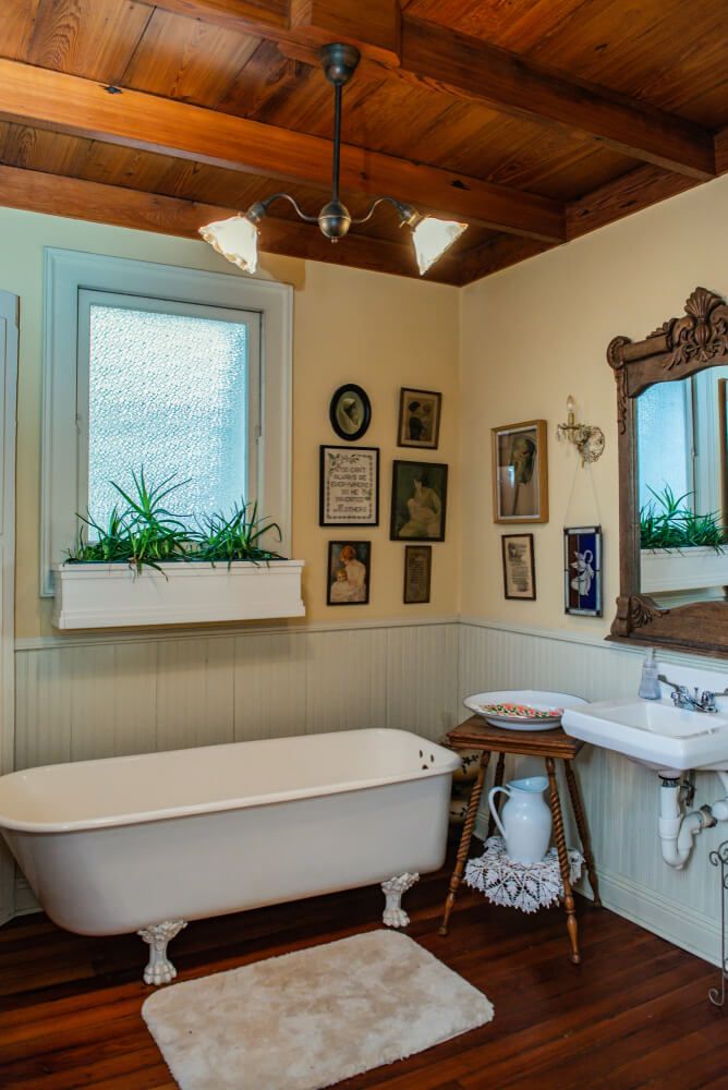 You can also add rustic elements like an antique dresser or a clawfoot tub to complete the look. Don't be afraid to repurpose old furniture or antique finds. Incorporate plants and natural textiles into the decor and use woven baskets for storage.