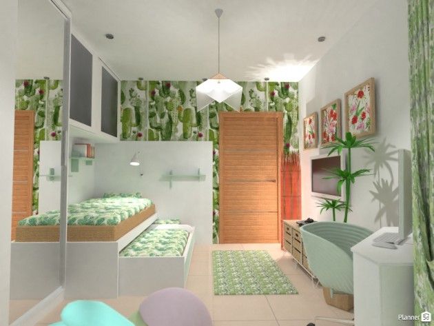 If your kid's room is small, make the most of what you have with creative solutions. Instead of placing everything on one level, go vertical. Use height to your advantage, as well as every nook and cranny.