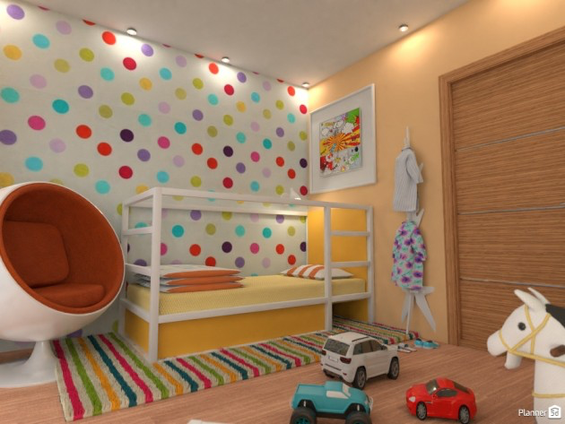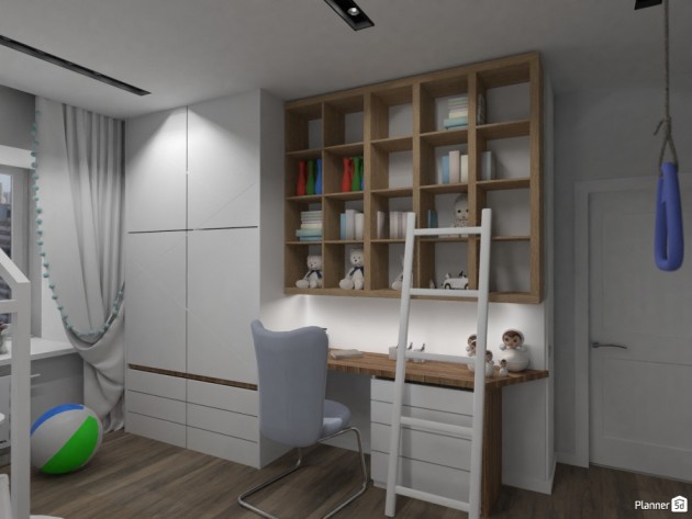 Keeping the work/study space separate from the sleeping area is essential for adults and for your toddler. When brainstorming kids' bedroom ideas, remember to keep this in mind. Set up a creative corner in your boy's room with a mini desk, a table lamp, and plenty of colors and paints for artistic stimulation.