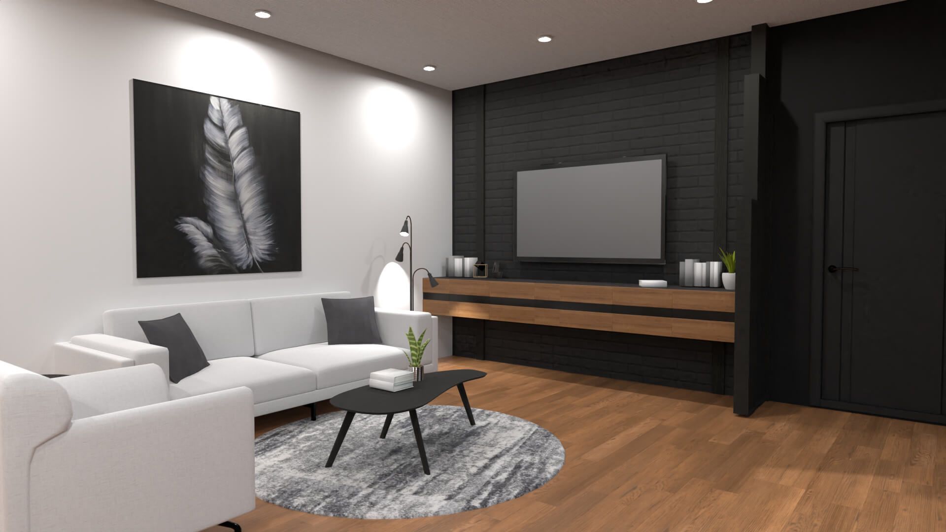 Three colors dominate the house: brown (wood), white and black. The user is using the three-color rule commonly used by designers. This combination makes the interior stand out and looks aesthetically pleasing.