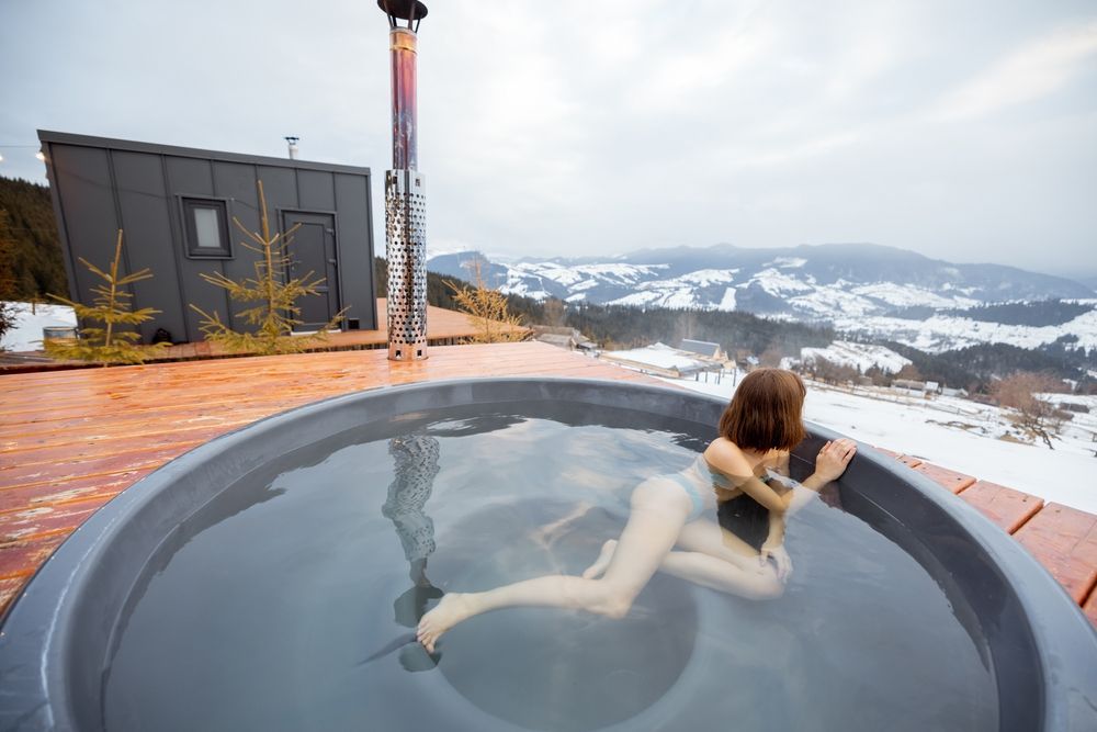 A small rustic pool house in the mountains
