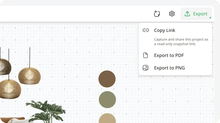 Once you've completed your project, sharing it is very simple. You can export high-resolution images for client reviews or presentations, or share your mood boards directly with others through email or a link.
