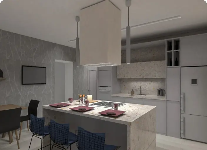 Finalmente, con un solo clic, crea un render fotorrealista de tu vivienda. Antes de convertir tu proyecto a 3D, te recomendamos agregar algo de luz a la maqueta. Elige entre una amplia selección de lámparas y apliques, que introducirán luz en tus interiores y le darán un aspecto fotorrealista a la imagen final.