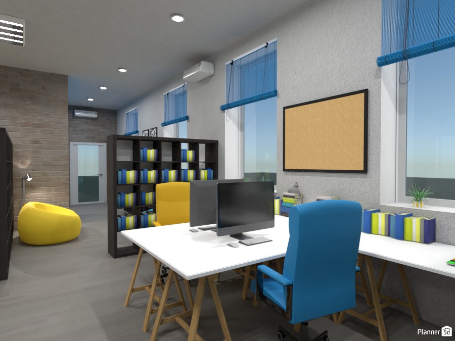 Cada processo de design é único e normalmente leva muito tempo e esforço para ser criado. Existem muitos fatores e parâmetros que você deve ter em mente. É aqui que o Planner 5D vem par ajudar. Ele ajuda você a finalizar o design de interiores do seu projeto de escritório para que seja utilizado com eficiência. O melhor é que você não precisa ser um designer profissional.